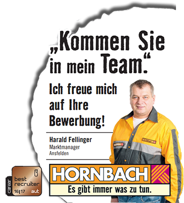 In unserem Team ist immer Platz für neue Ideen und gute Köpfe, die aus ihrer beruflichen Zukunft ein erfolgreiches Projekt machen wollen. Bewerben Sie sich jetzt online unter www.hornbach.at/jobs